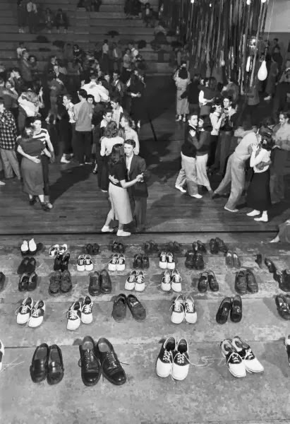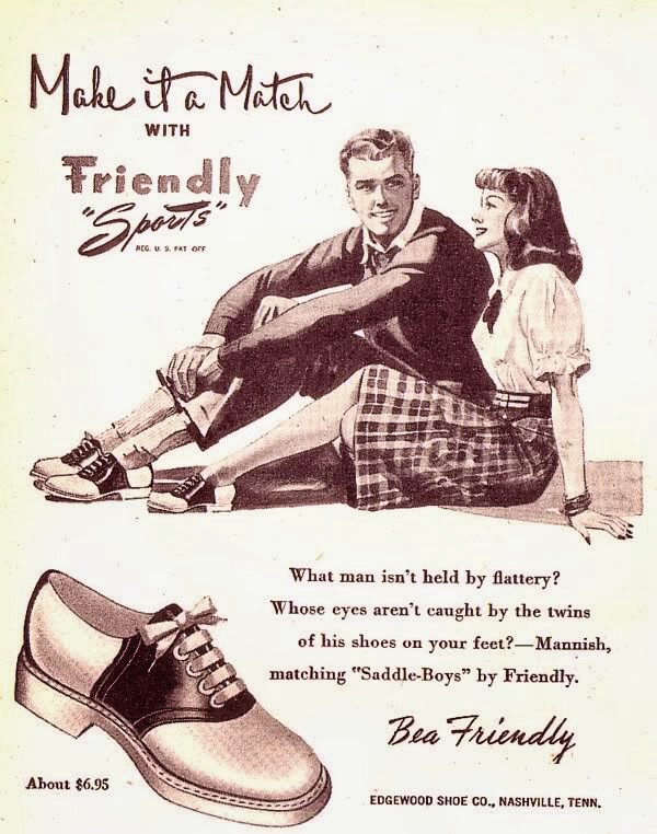 It had soft white leather and a black leather mid panel (shaped somewhat like a horse’s saddle). It also had a matching black leather stripe that ran down the back of the shoe. The originals were made with white leather soles. The contrasting saddle itself was decorative and sporty but also was engineered to provide support for the arch and instep. Soon the shoe was being built with a red rubber sole for greater cushion and comfort and being used for a variety of sports and activities such as cheerleading, tennis and golf. When the Lindy Hop/Jitterbug craze came into popularity it became the shoe of choice for dancers and soon crossed over to the boys and worn with chino’s, denim and dress clothing.